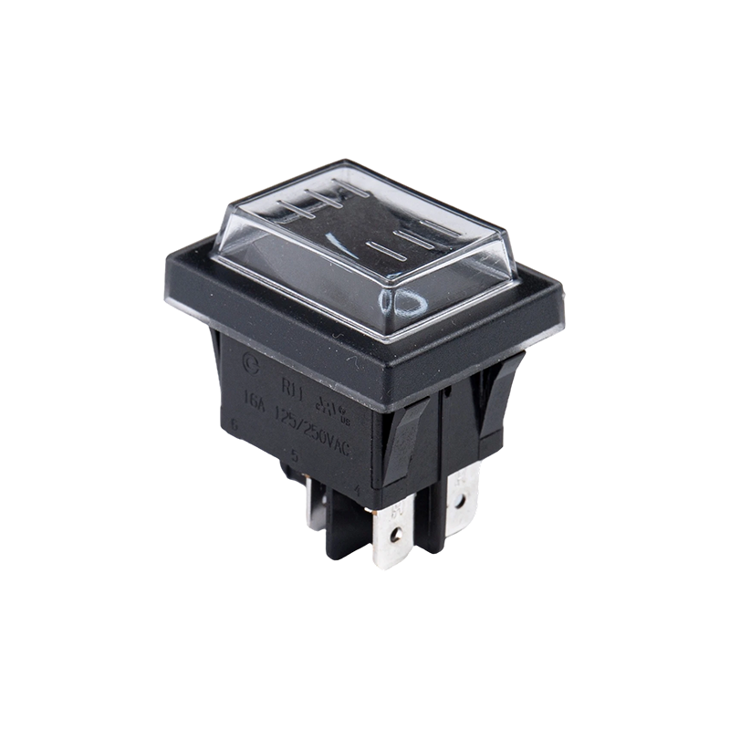 3. Termékleírás: Az R11-8 sorozat egy szabványos billenőkapcsoló, más néven billenőkapcsoló vagy hullámkapcsoló. Többféle stílus áll rendelkezésre, beleértve a por- és vízálló védőburkolatokat, vagy a belső porálló szerkezeteket a hasonló védelem érdekében. Rendkívül sokoldalú, széles körben használják különféle elektromos kéziszerszámokban, kerti szerszámokban és tisztítóberendezésekben, mint például asztali fűrészek, asztali darálók, elektromos fűnyírók, ágaprítók, magasnyomású mosók, nedves/száraz porszívók, valamint háztartási gépekhez, műszerekhez és irodai berendezésekhez egyaránt alkalmas.