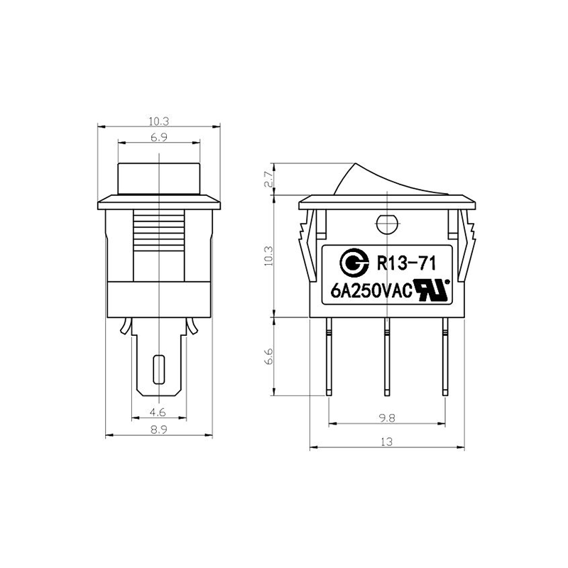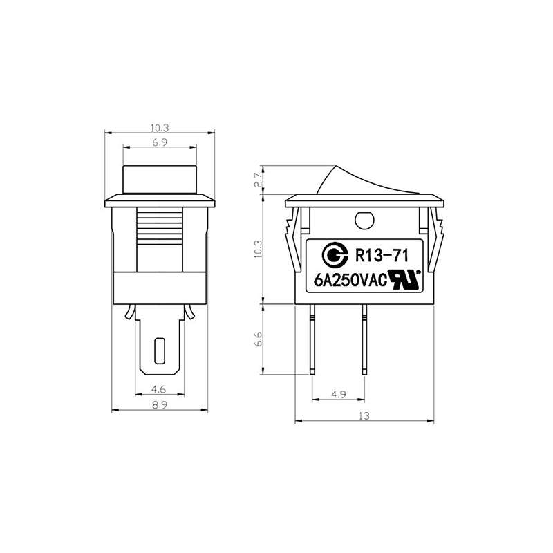 Shanghai Qijia Electronics Co., Ltd. Otthon / Termékek / Billenőkapcsoló / R13 billenőkapcsoló / R13-71 billenőkapcsoló